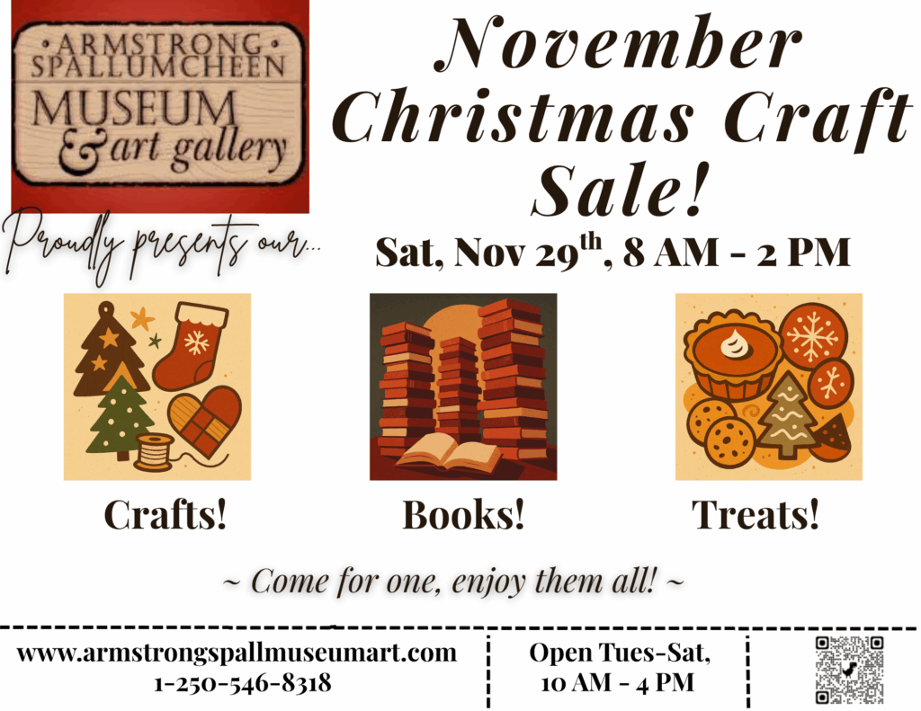 THE Armstrong Spallumcheen Museum and Art Gallery is located in historic downtown Armstrong. The first building on this site was moved from Lansdowne in 1901. Over time he expanded the building. The business was later operated by his sons and gradually changed into a machine shop. It has also served as a storage facility, automobile garage and gas station. Since becoming a museum, the facility has been upgraded many times, Our renovations in 2011 included fresh paint, new signage, a timber frame entrance and a colonnade. We now have a brand new, but still historic, look for a favourite old building.
