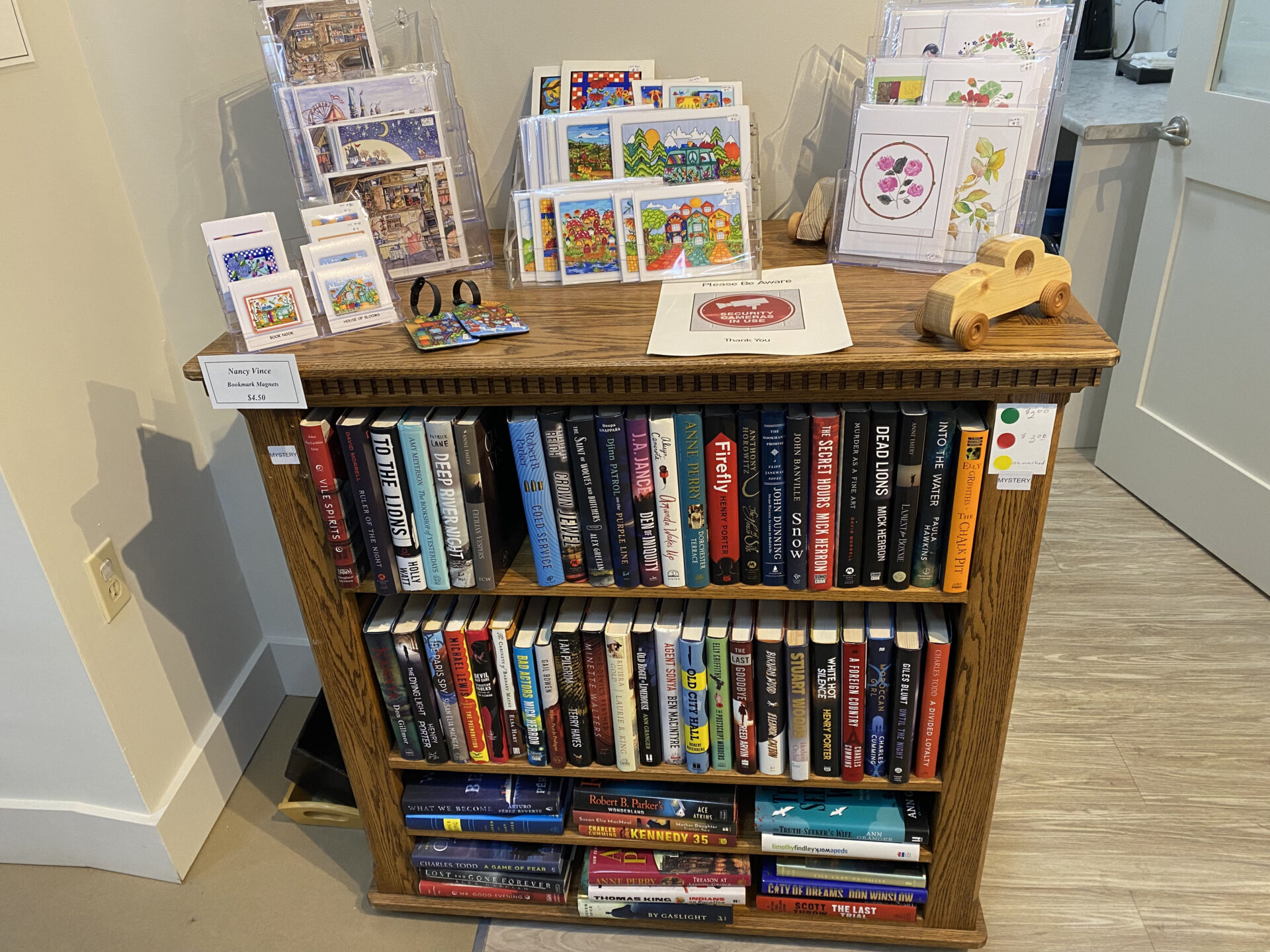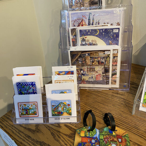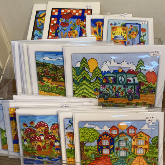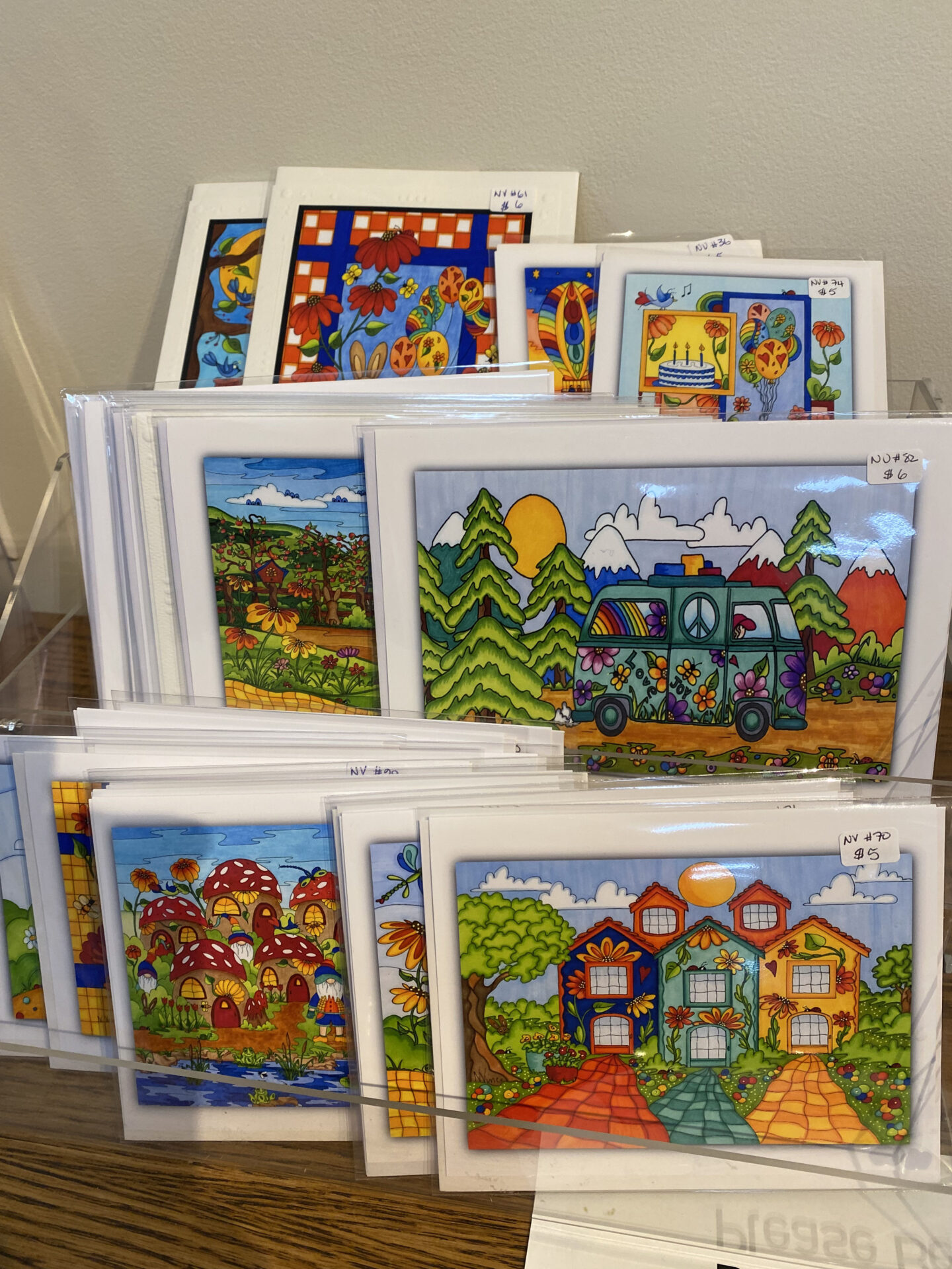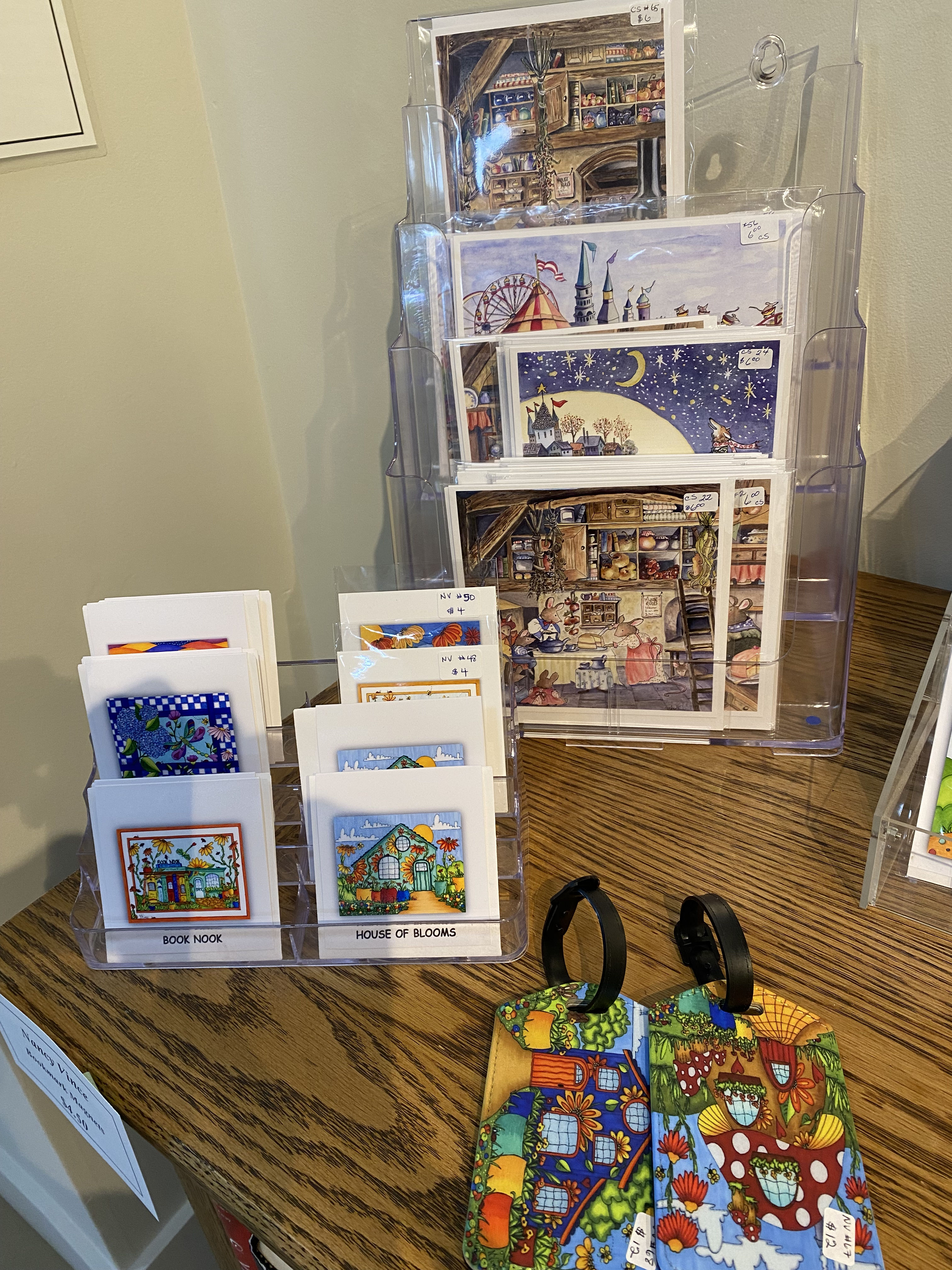 January to April we host book sales on Saturdays, bringing out more and more books…until our gigantic book sale that takes over the whole gallery, which happens annually in early April. Watch our home page for details!We also carry art cards, created individually by local artists – a unique touch for your next card recipient.